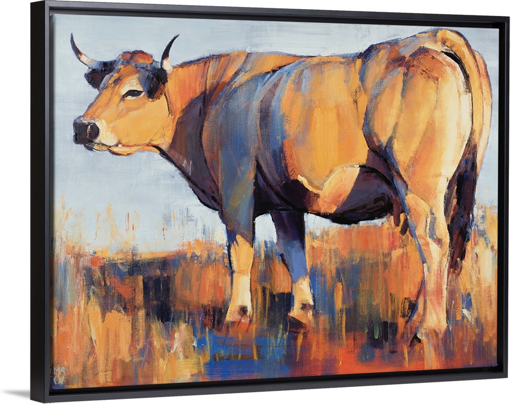 <p>Contemporary painting of a large cow in a field in harsh sunlight.</p>