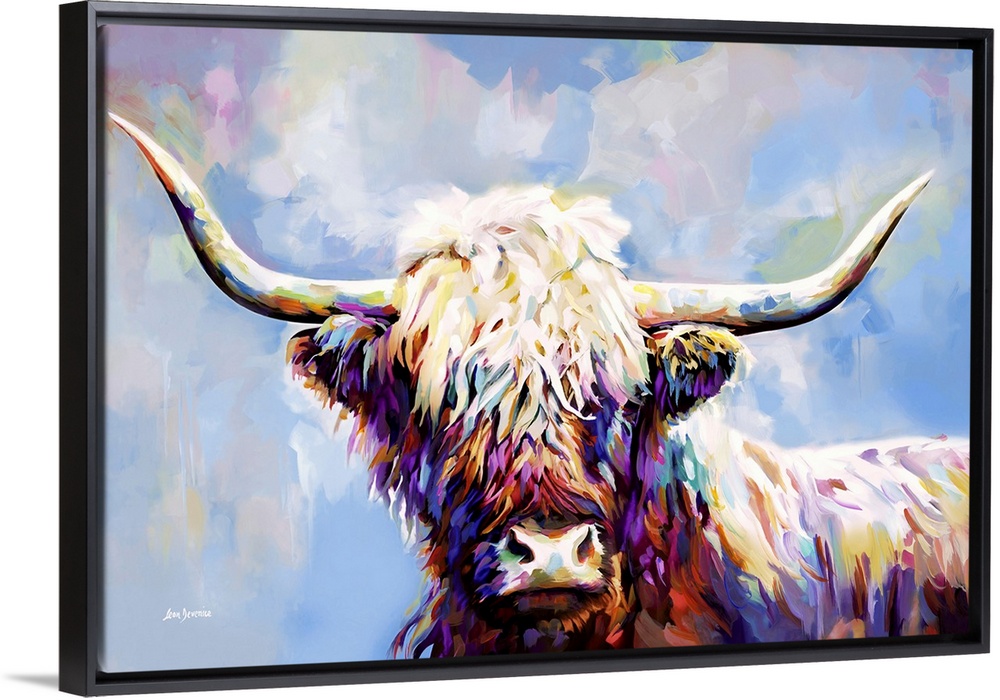 Art Farmhouse Office Blue Wall Art Contemporary Art Leon Devenice Painting Wildlife Cow