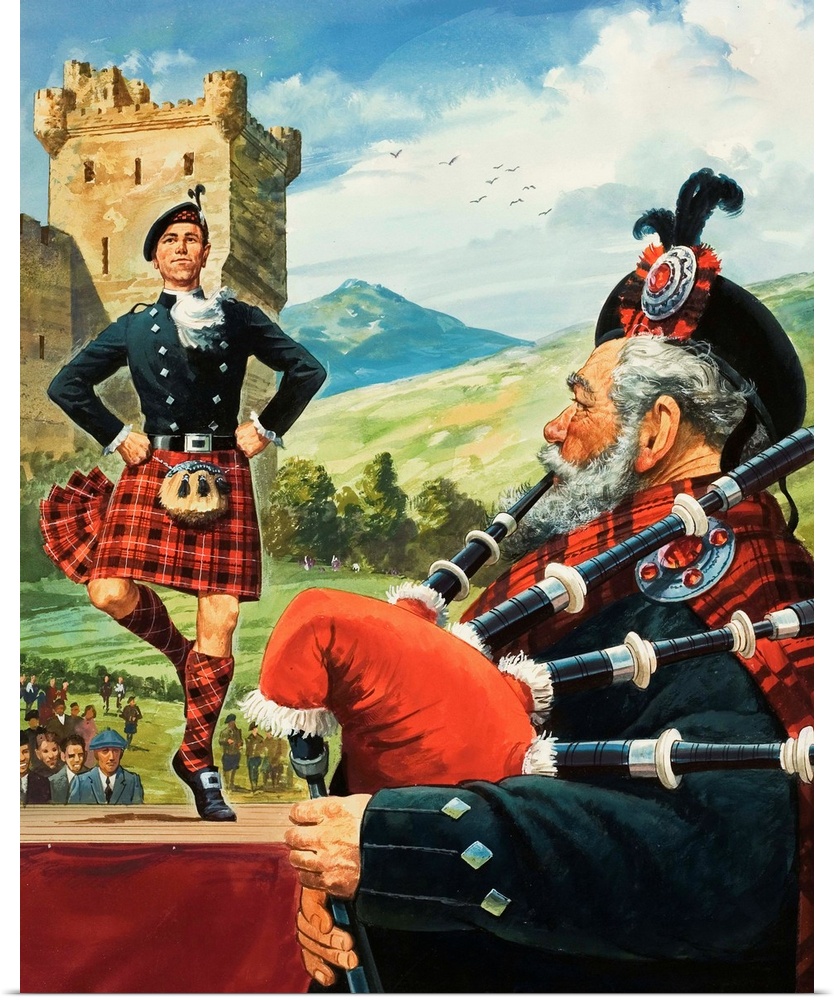 <p>Highland Dancing. Original artwork for illustration on p14 of Look and Learn issue no 351 (5 October 1968).</p>
