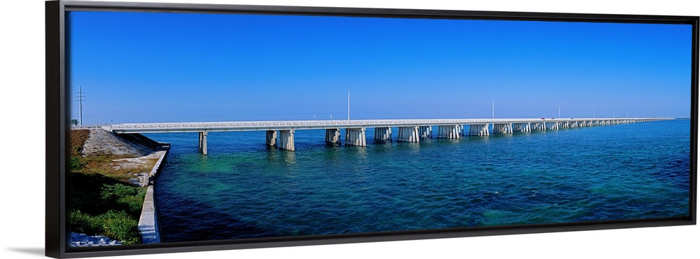<p>Big panoramic photo print of a long bridge going over the ocean.</p>