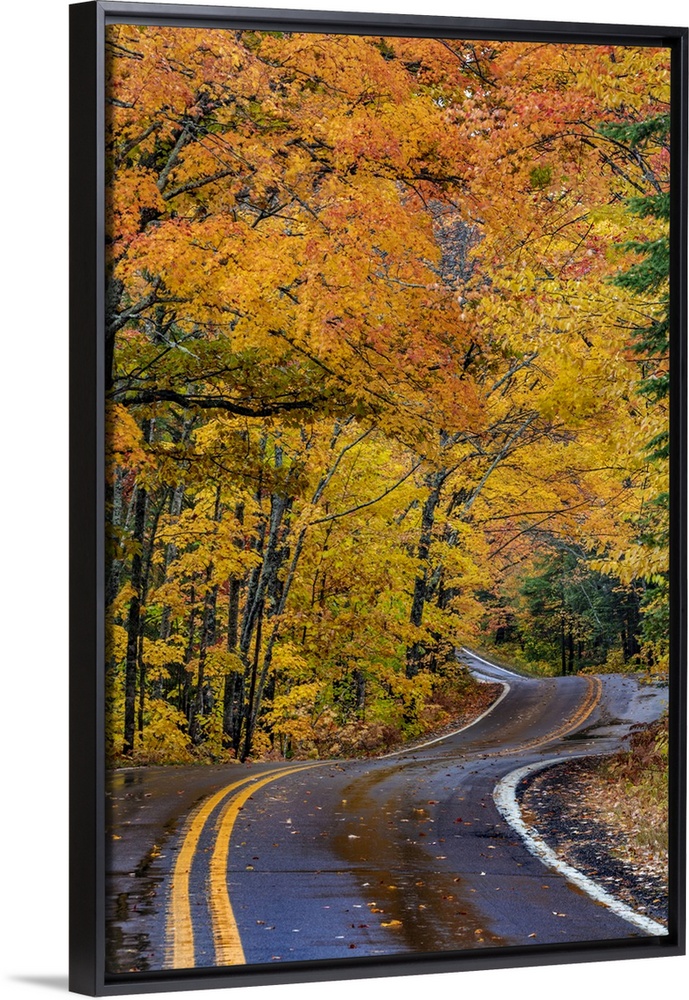 <p>USA, North America, Michigan. Highway 41 Covered Roadway In Autumn Near Copper Harbor In The Upper Peninsula Of Michigan.</p>