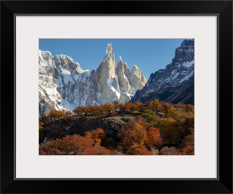 <p>Views along the day hike to Laguna Torre peak with fall color of southern beech, or Nothofagus trees in Los Glaciares National Park, El Chalten, Argentina</p>