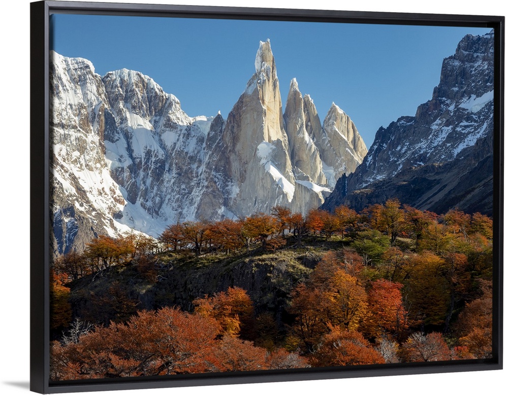<p>Views along the day hike to Laguna Torre peak with fall color of southern beech, or Nothofagus trees in Los Glaciares National Park, El Chalten, Argentina</p>