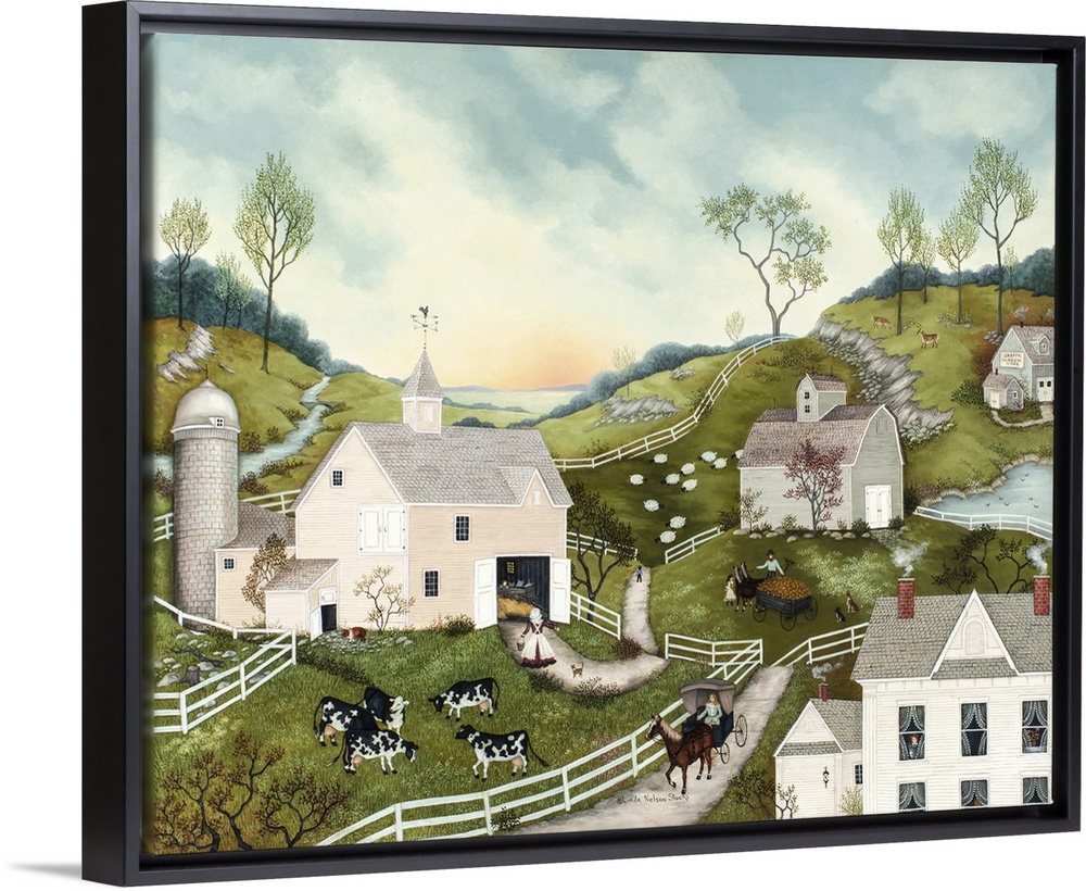 Americana Art Farmhouse Cityscapes Contemporary Art Folk Art Villages Painting Linda Nelson Stocks