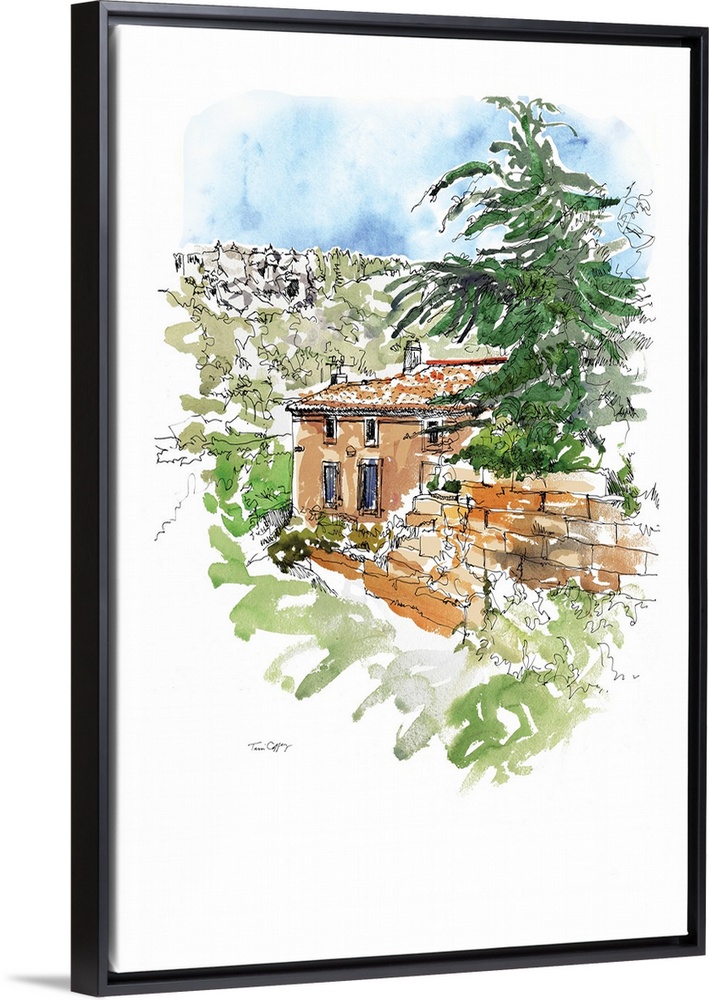 <p>A lovely pen and ink rendering of a remote hillside home</p>