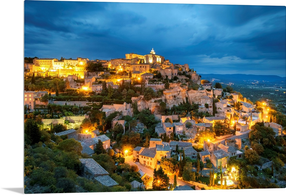 <p>Hilltop town of Gordes at dusk, Vaucluse, Provence-Alpes-Cote d'Azur, France.</p>