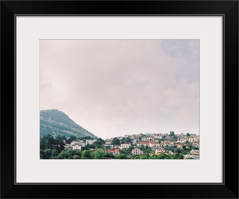 <p>Photograph of buildings perched on a heavily wooded hillside.</p>