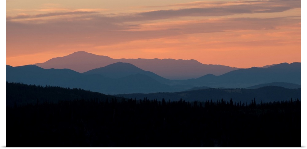 <p>Landscape photograph of a silhouetted mountain range at sunset.</p>