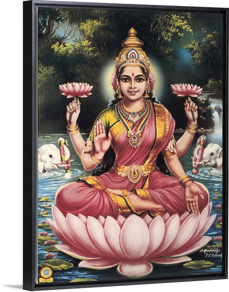 <p>Goddess Srhi Sentamarai Laximi, wife of Vishnu. Hindu art. -</p>