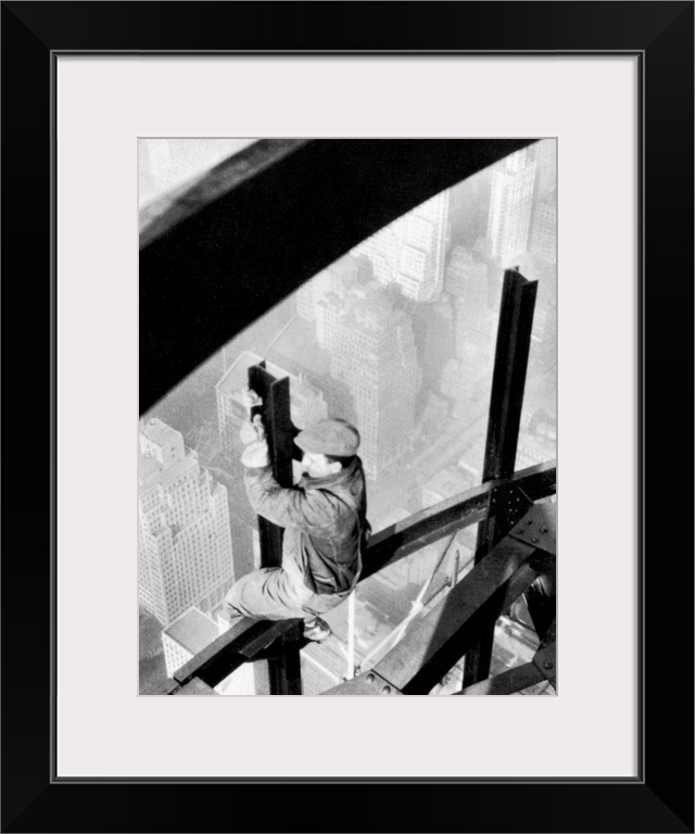 <p>Steelworker atop the Empire State Building, New York City, during its construction. Photograph by Lewis Hine, 1931.</p>