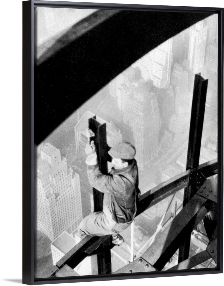 <p>Steelworker atop the Empire State Building, New York City, during its construction. Photograph by Lewis Hine, 1931.</p>