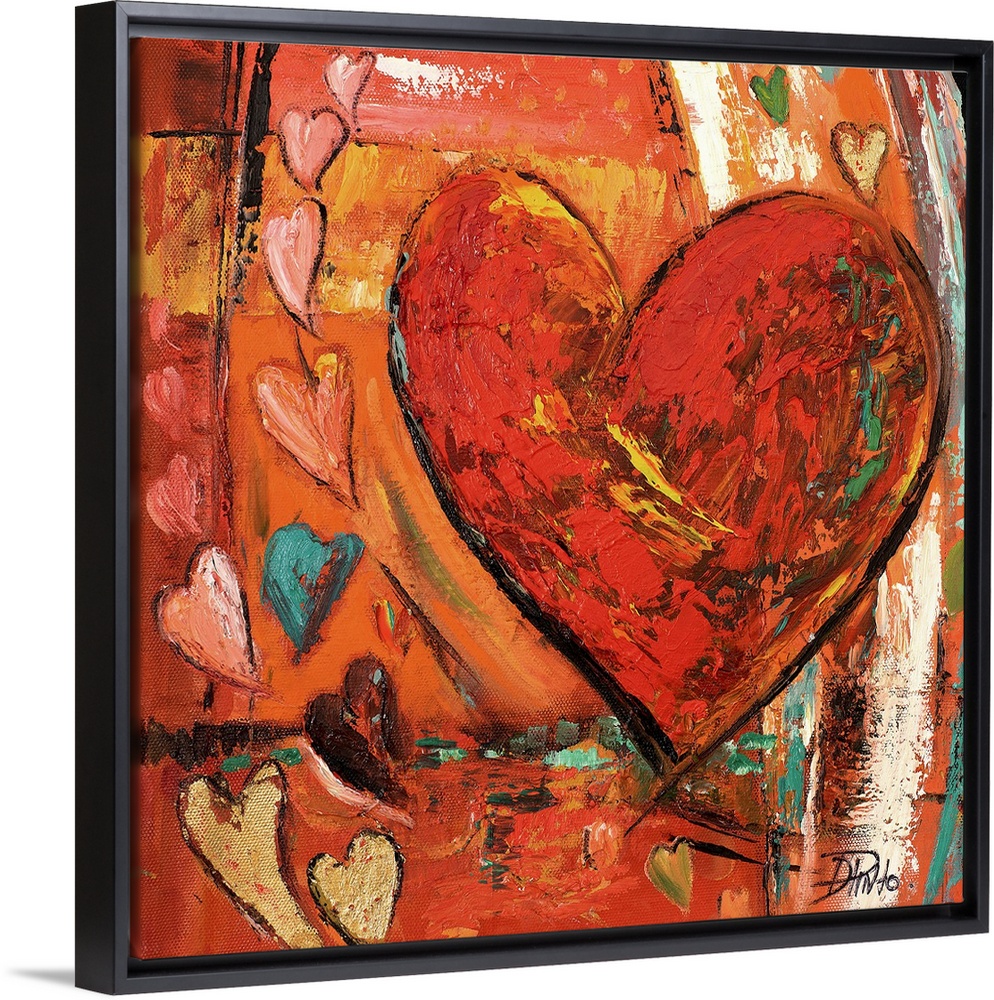 <p>Painting of a large red heart with several smaller hearts around it.</p>