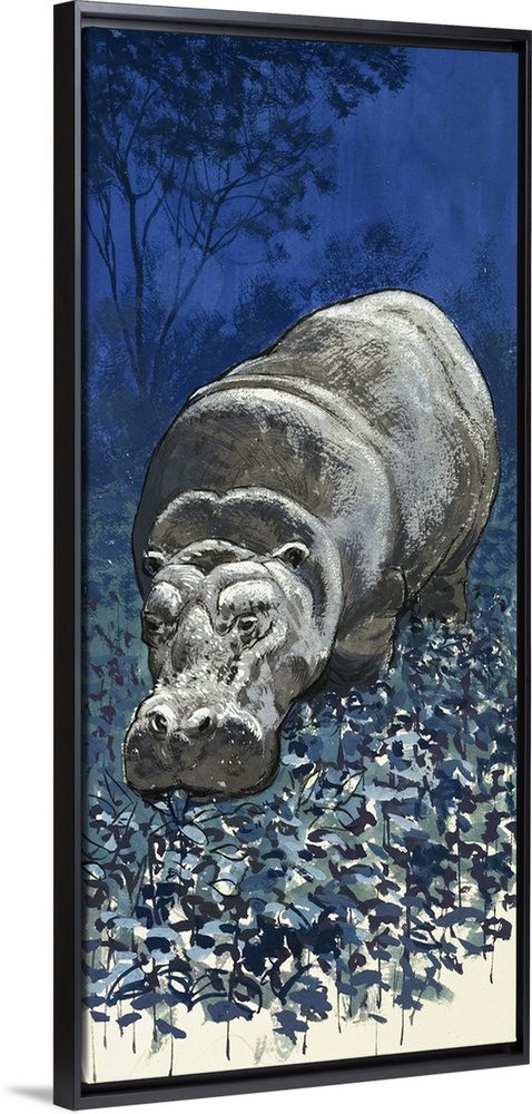 Art Blue Wall Art Wildlife Illustrations Animal Illustrations Painting English School Vintage Art Wildlife Hippopotamus