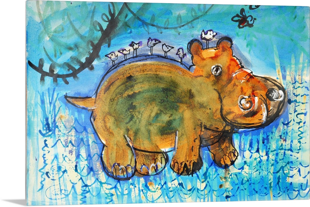 Art Blue Wall Art Brenda Brin Booker Contemporary Art Wildlife Painting Watercolor Wildlife Hippopotamus