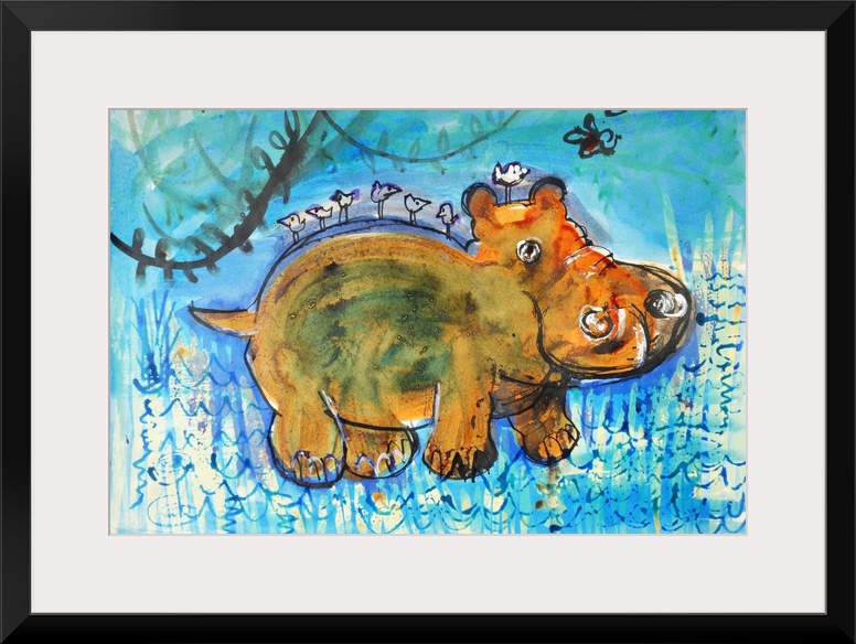Art Blue Wall Art Brenda Brin Booker Contemporary Art Wildlife Painting Watercolor Wildlife Hippopotamus