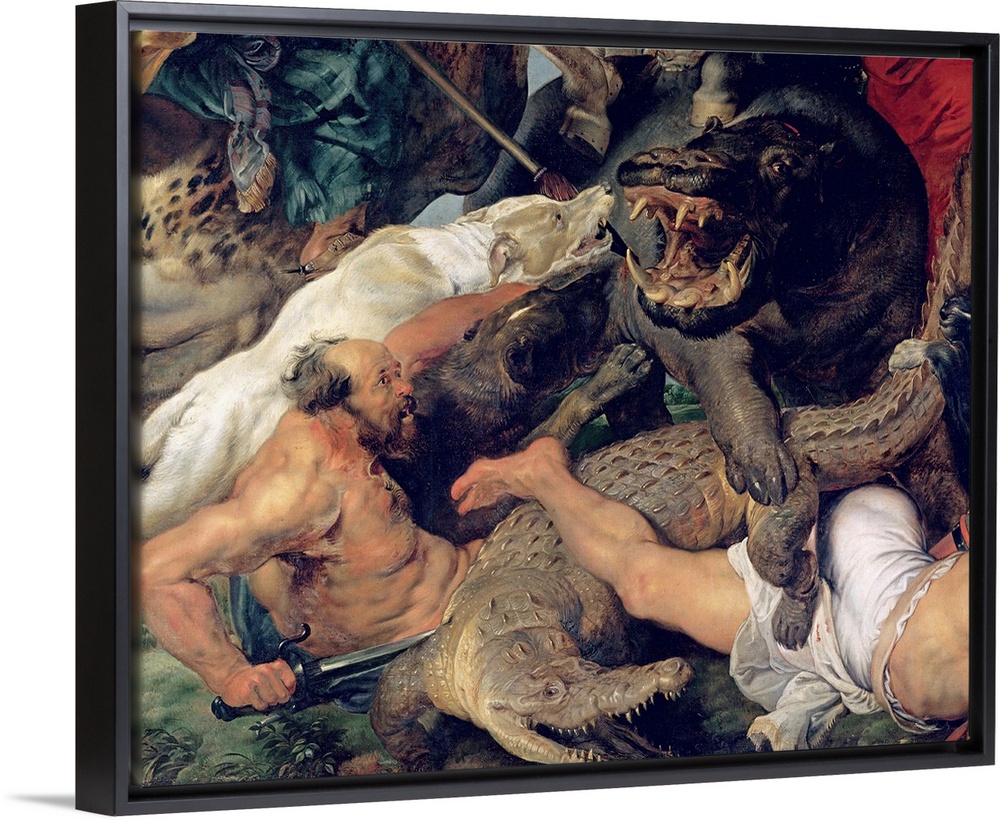 <p>XIR170972 Hippopotamus and Crocodile Hunt, c.1615-16 (oil on canvas) (detail) (see also 156517); by Rubens, Peter Paul (1577-1640); 248x321 cm; Alte Pinakothek, Munich, Germany; Flemish, out of copyright</p>