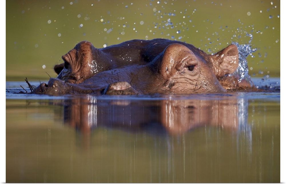 <p>Hippopotamus (Hippopotamus amphibius) flipping water with its ear, Kruger National Park, South Africa, Africa</p>