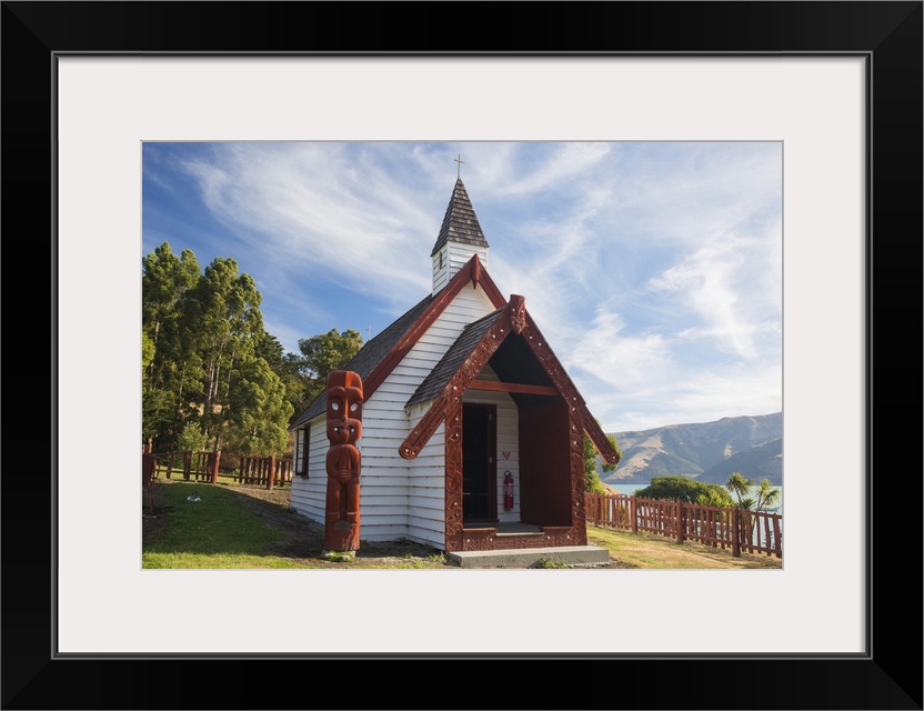 <p>Historic Maori church on hillside above Akaroa Harbour, Onuku, near Akaroa, Banks Peninsula, Canterbury, South Island, New Zealand, Pacific</p>