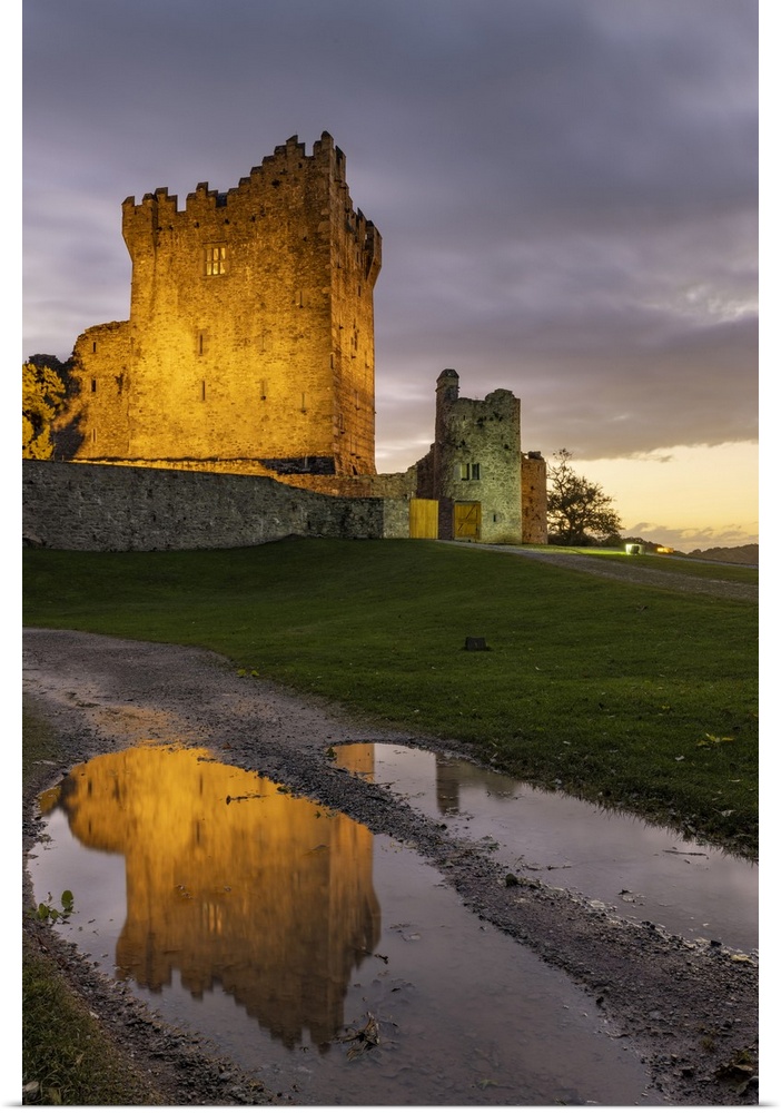<p>Historic Ross Castle at dusk in Killarney National Park, Ireland.</p>
