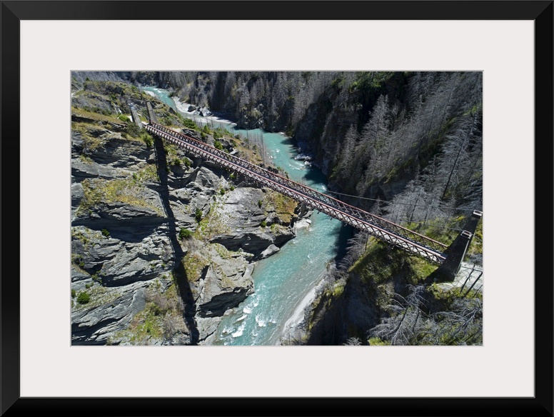 <p>Historic skippers suspension bridge (1901), above shotover river, skippers canyon, Queenstown, South Island, New Zealand.</p>