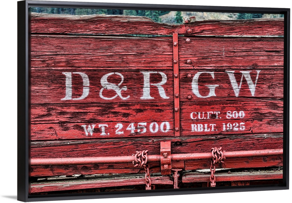 <p>Close up photo of detail and lettering from a vintage train car.</p>