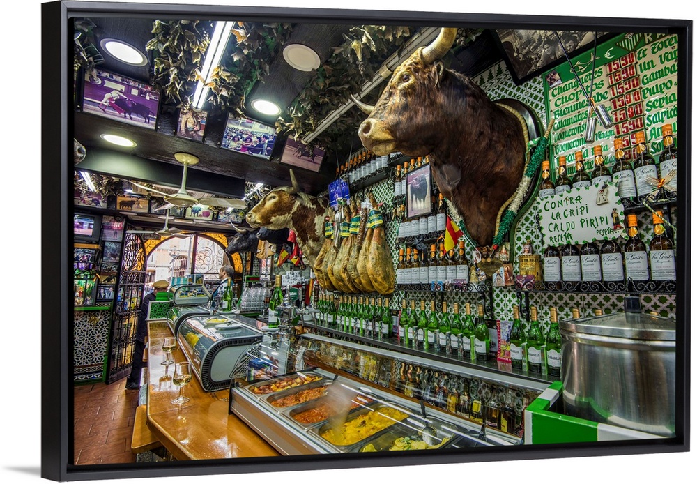 <p>Historical Tapas Bar Adorned With Traditional Bullfighting Memorabilia, Madrid, Community Of Madrid, Spain</p>