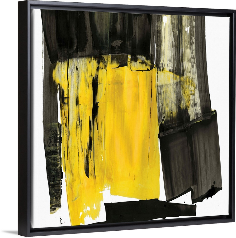<p>Contemporary abstract artwork in black and grey with a pop of bright yellow.</p>