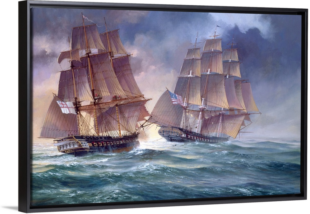 <p>Painting of of an old naval vessels in the heat of battle.</p>
