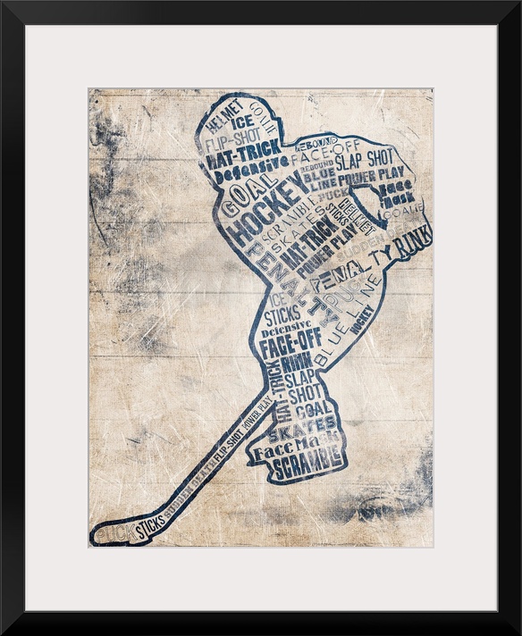 <p>Hockey player composed of different styles of text against a weathered neutral background.</p>