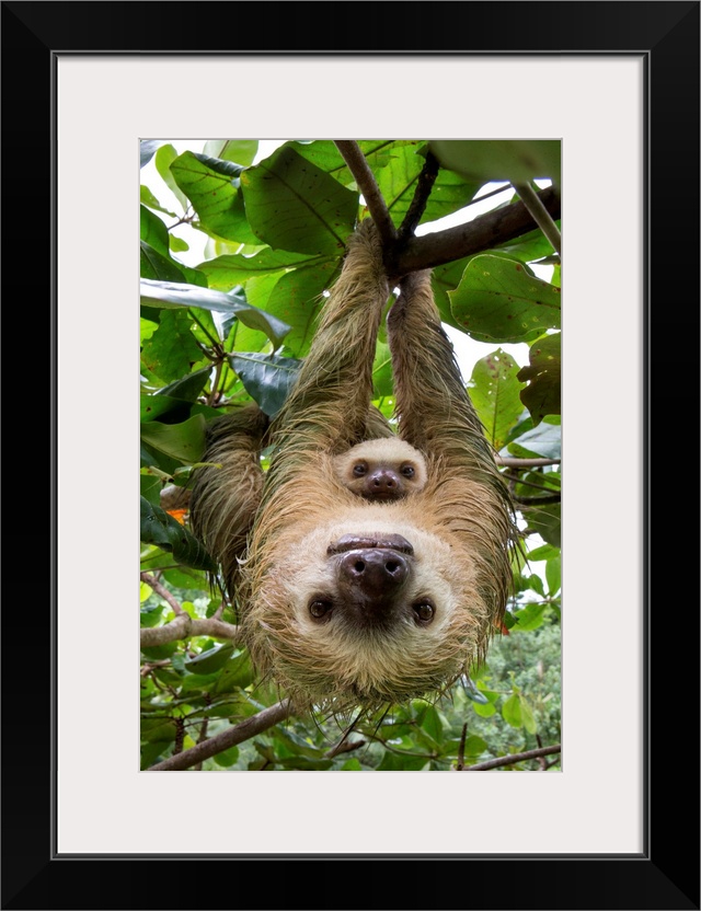 <p>Hoffmann's Two-toed Sloth (Choloepus hoffmanni) mother and two month old baby, Aviarios Sloth Sanctuary, Costa Rica.</p>