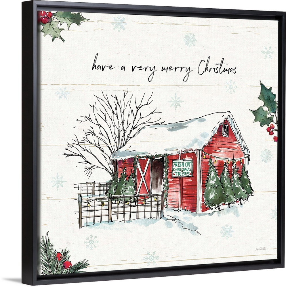 Art Decorate for the Holidays Holiday by Style Farmhouse Christmas Rustic Holiday Art Decorative Art Graphic Art Holidays Christmas Christmas Trees Landscapes Barn Countryside Anne Tavoletti