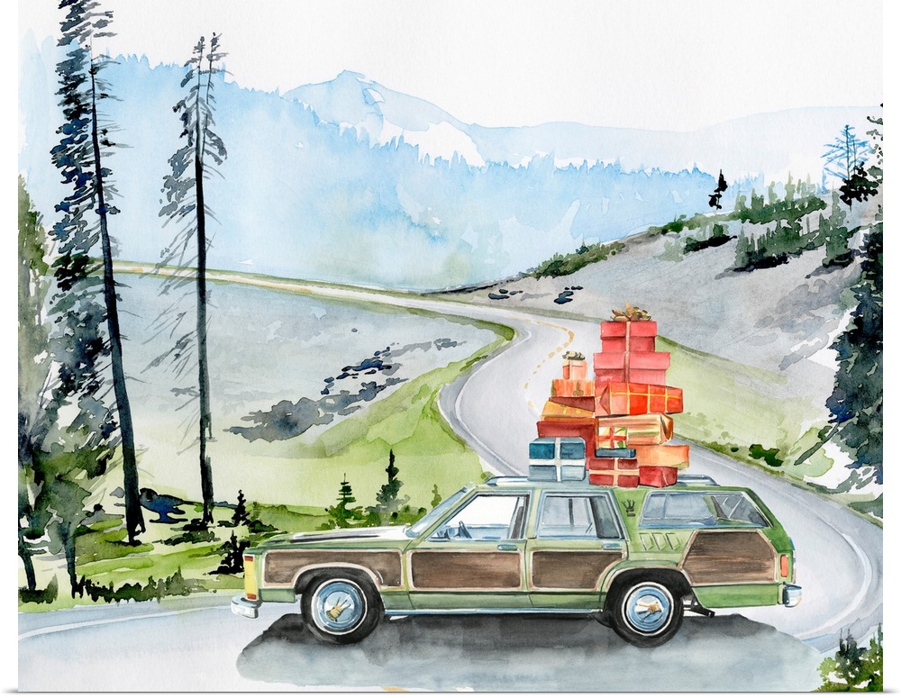 Art Decorative Art Holidays Christmas Painting Jennifer Paxton Parker Transportation Car Watercolor