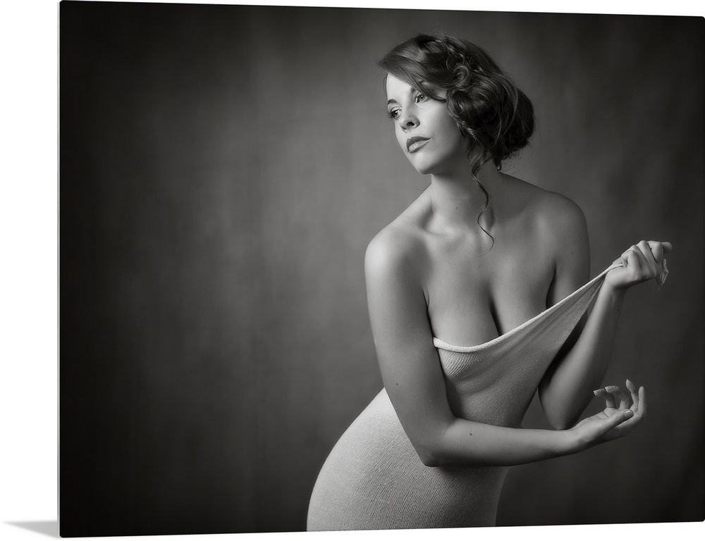 <p>Elegant black and white portrait of a woman undressing.</p>