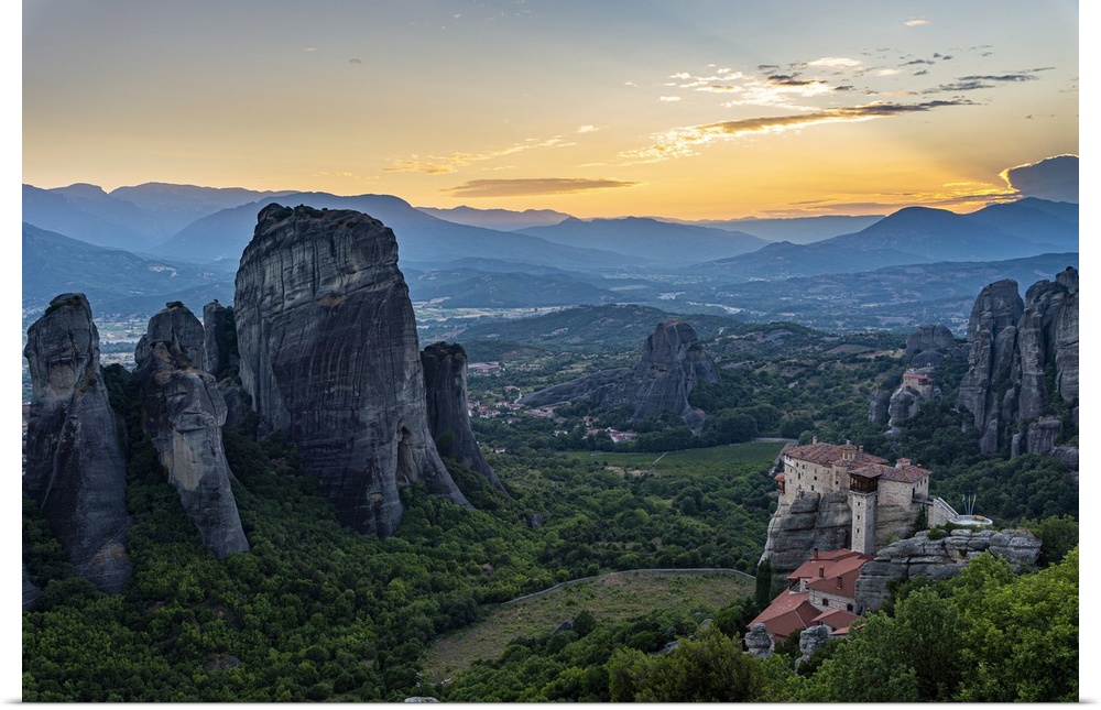 <p>Holy Monastery of St. Nicholas Anapafsas at sunset, UNESCO World Heritage Site, Meteora Monasteries, Greece, Europe</p>