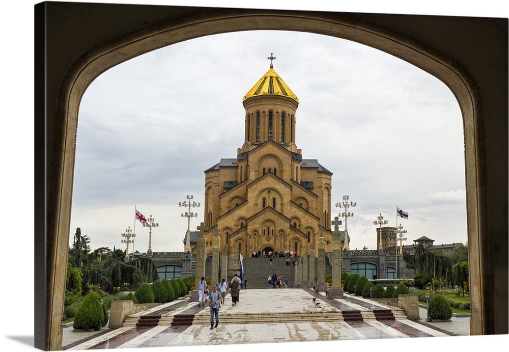 <p>Holy Trinity Cathedral viewed through arches, Tbilisi, Georgia, Caucasus</p>