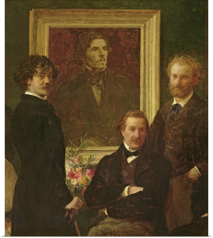 <p>Originally oil on canvas. By Fantin-Latour, Ignace Henri Jean (1836-1904): self portrait (in white shirt with palette) with, from left, Louis Cordier, Louis Edmond Duranty, Alphonse Legros, Fantin-Latour, James Whistler, Jules Champfleury, Edouard Manet, Felix Bracquemond, Charles Baudelaire, Albert de Balleroy, 1864; admiration for Ferdinand Victor Eugene Delacroix (1798-1863);</p>