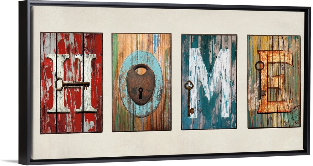 <p>"HOME" sign with antique keys or a lock on each letter.</p>