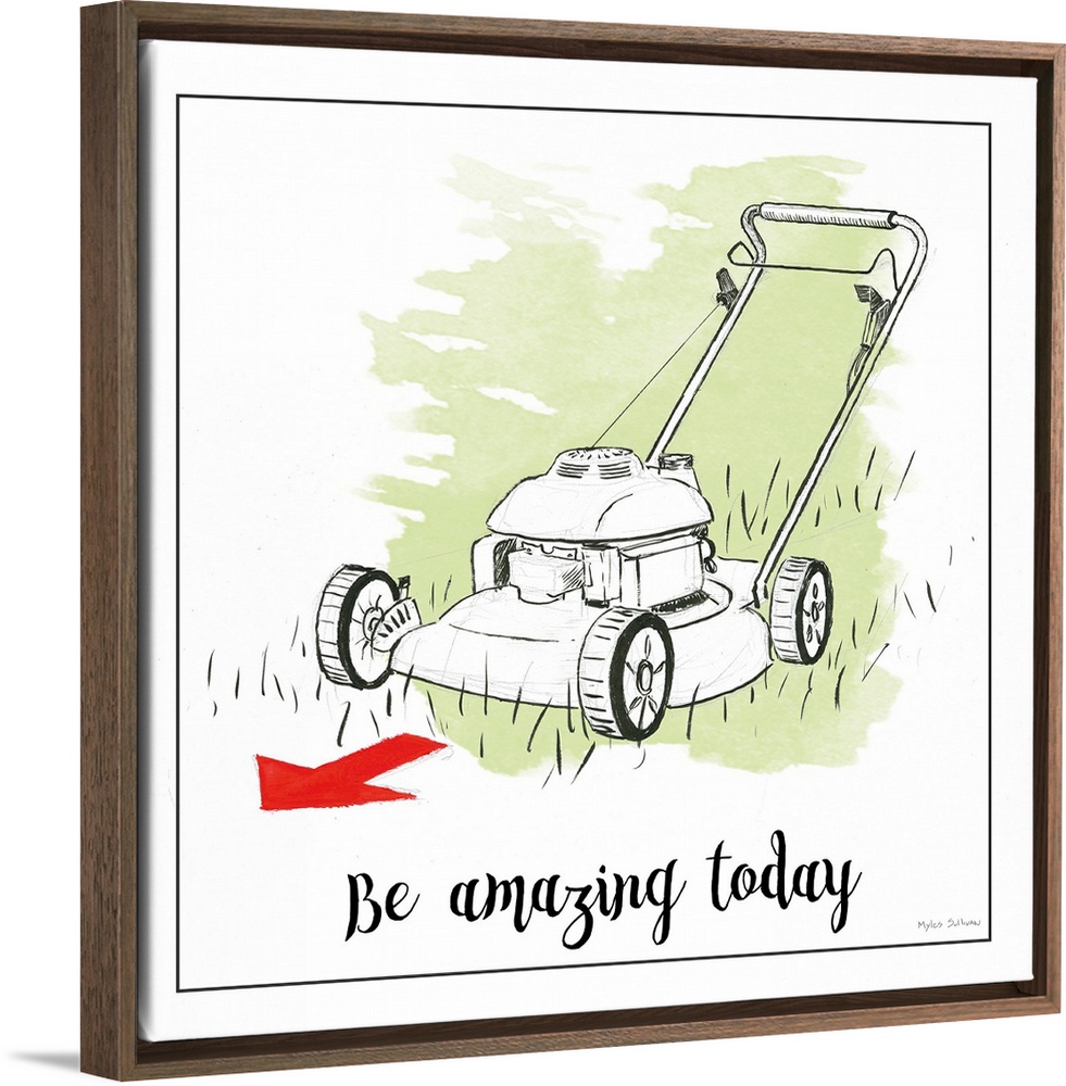 <p>A humorous design about home improvement featuring a yard mower and the text 'Be Amazing Today'.</p>
