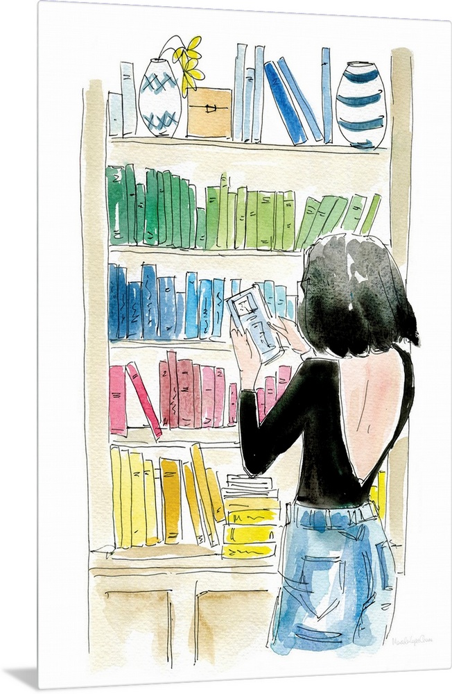 Art Mercedes Lopez Charro College Dorm Decor Contemporary Art Multicolor Wall Art Painting People Reading and Literature Watercolor