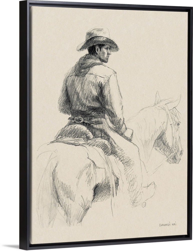 Art Farmhouse Beige Contemporary Art Drawing Illustrations Danhui Nai People Cowboys
