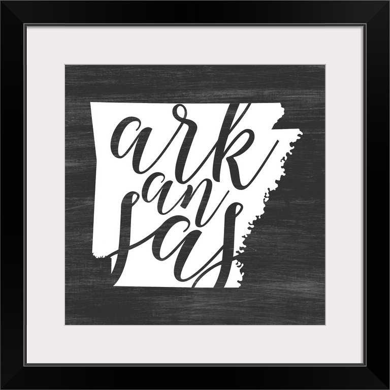 <p>Arkansas state outline typography artwork.</p>