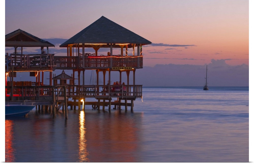 <p>Honduras, Bay Islands, Roatan, West End, Fosters bar and restaurant at sunset</p>