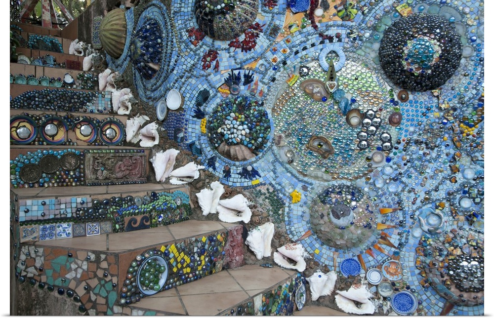 <p>Central America, Honduras, Bay Islands, Utila, mosaic steps at hotel in Utila town.</p>