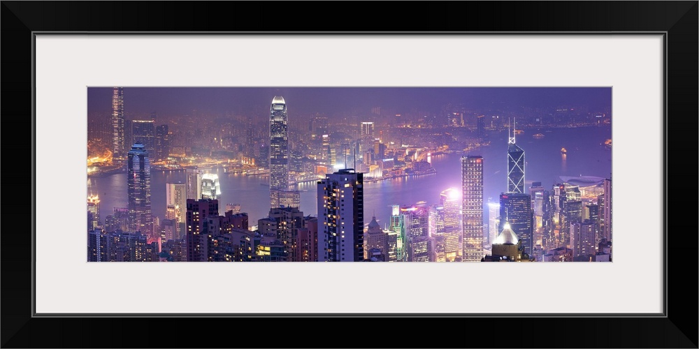 <p>China, Hong Kong, Hong Kong island, City skyline with the Victoria Harbor, view from Victoria Peak at night.</p>