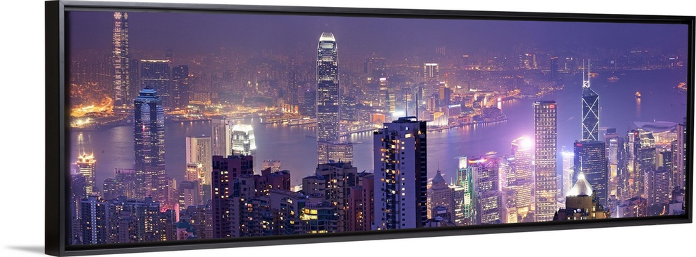 <p>China, Hong Kong, Hong Kong island, City skyline with the Victoria Harbor, view from Victoria Peak at night.</p>