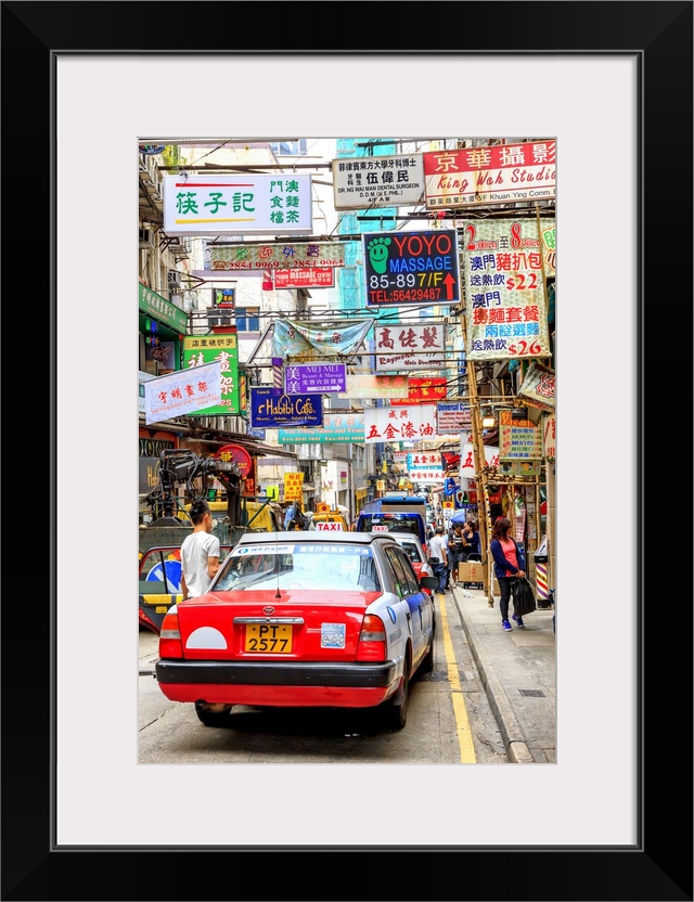 <p>Hong Kong, Hong Kong island, Taxi in a typical side road</p>