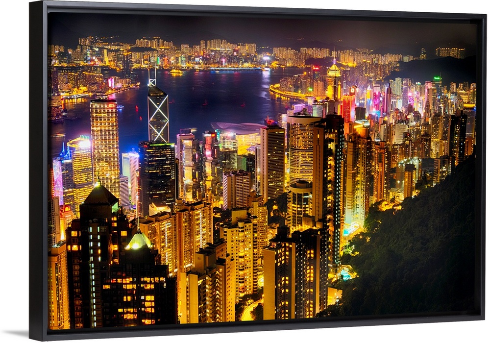 <p>High angle view of Hong Kong night skyline from the Victoria Peak.</p>
