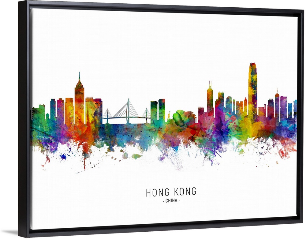 <p>Watercolor art print of the skyline of Hong Kong, China.</p>