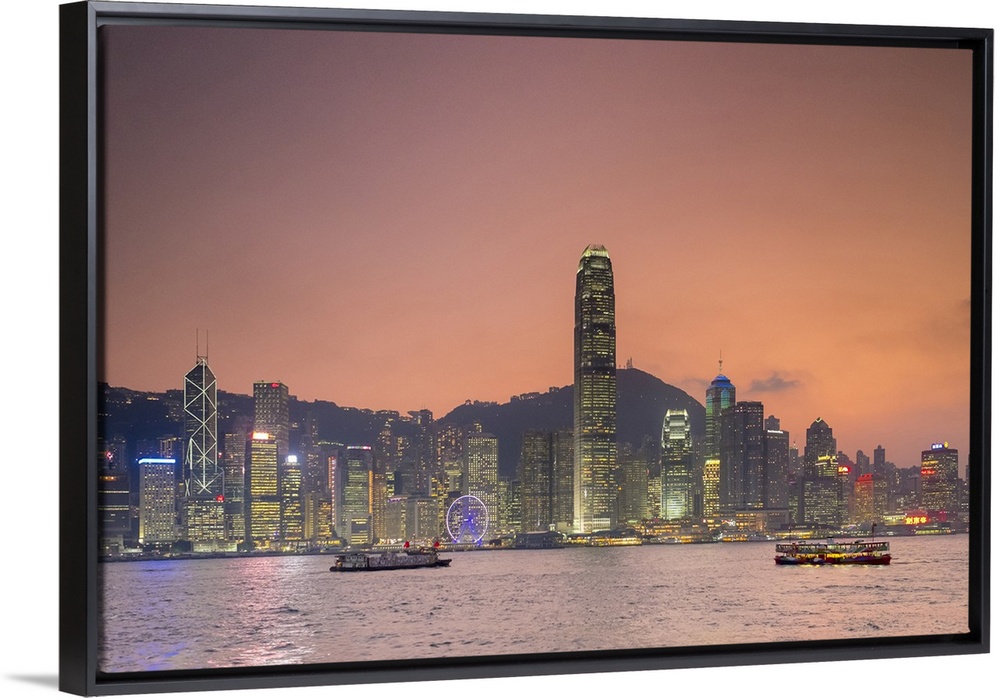 <p>Hong Kong skyline, skyscrapers on Hong Kong Island seen from Tsim Sha Tsui at sunset, Hong Kong, China.</p>