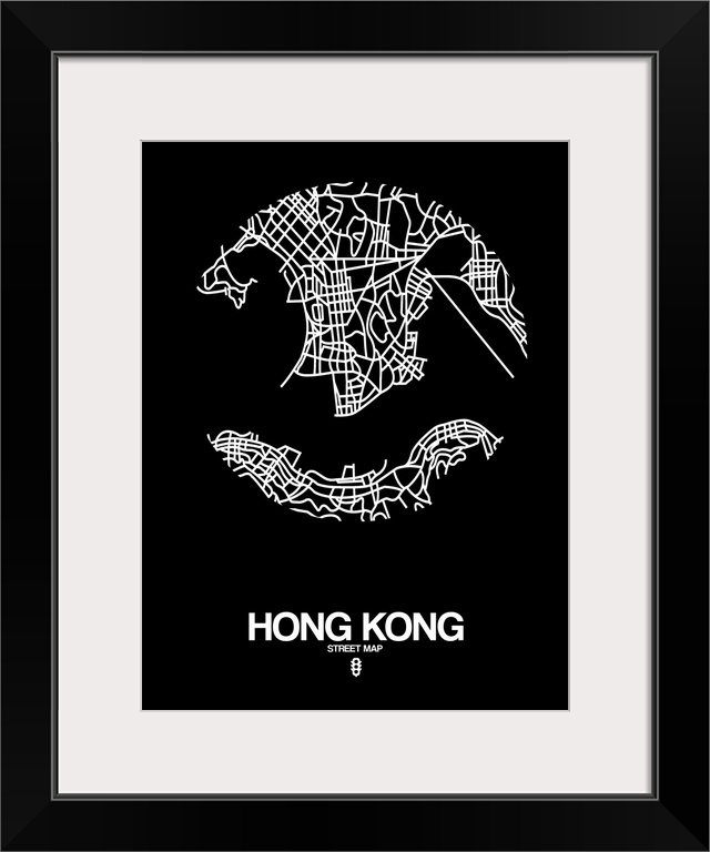<p>Minimalist art map of the city streets of Hong Kong in black and white.</p>